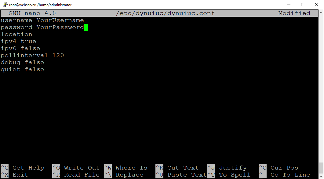 • Voeg achter "password" je Dynu wachtwoord toe.