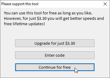 3. Klik in het eerste scherm op de "Continue for free" button.