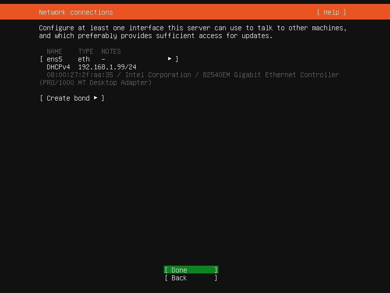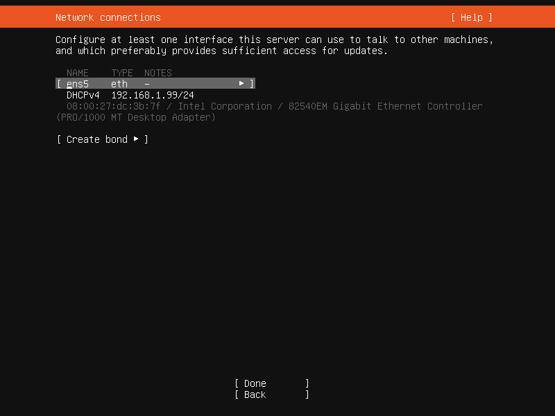 • Selecteer ens5 en geef Enter. (Afhankelijk van de hardware kan er een andere naam staan)