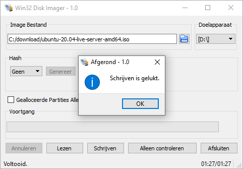 1. Als het schrijven gelukt is kan het programma worden gesloten en de USB stick veilig worden verwijderd.