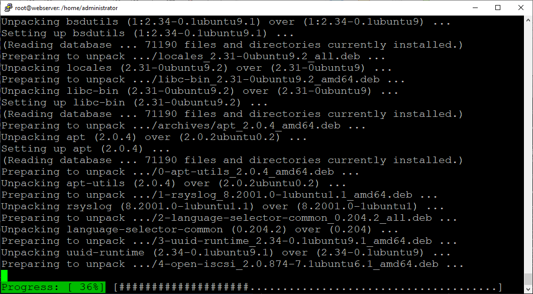Dit commando haalt een aantal lijsten met beschikbare updates op en kijkt welke daarvan voor onze server van toepassing zijn.