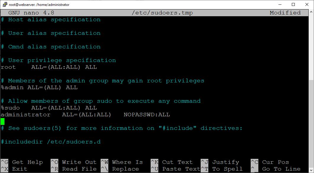 administrator ALL=(ALL:ALL) NOPASSWD:ALL